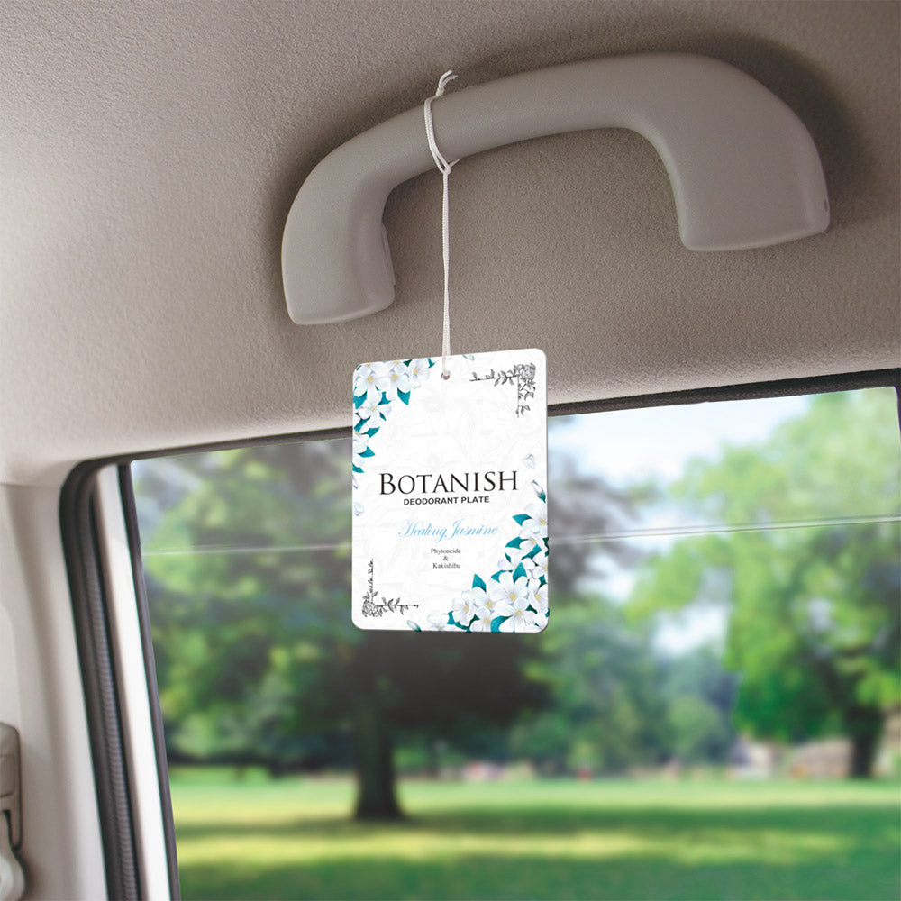 天然消臭成分「柿渋エキス」「フィトンチッド」を配合した吊り下げタイプの消臭剤。ボタニカルの恵みで車内がさわやかに。お得な3個パックだからリビングや玄関でも使用できます。